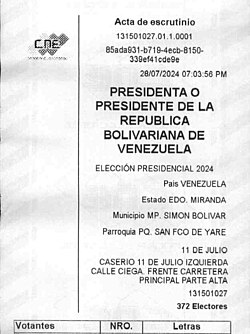 All files at Category:Minutes of the Vote Count for the 2024 Presidential Elections in Venezuela. | Commons:Deletion requests/All files at Category:Minutes of the Vote Count for the 2024 Presidential Elections in Venezuela - Kept as an official document |
